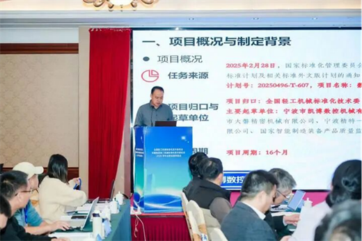 標(biāo)準(zhǔn)起草組代表、寧波市凱博數(shù)控機械有限公司總經(jīng)理李恒國,作為《數(shù)控雕銑機》(GB/T 24109)國家標(biāo)準(zhǔn)起草組成員,就標(biāo)準(zhǔn)修訂情況進行了專題匯報。