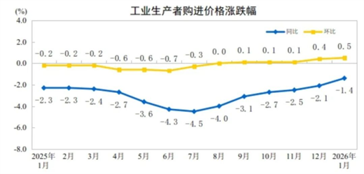 【機(jī)床商務(wù)網(wǎng)欄目 市場分析】2026年1月份,全國工業(yè)生產(chǎn)者出廠價格同比下降1.4%,降幅比上月收窄0.5個百分點;環(huán)比上漲0.4%,漲幅比上月擴(kuò)大0.2個百分點。工業(yè)生產(chǎn)者購進(jìn)價格同比下降1.4%,降幅比上月收窄0.7個百分點;環(huán)比上漲0.5%,漲幅比上月擴(kuò)大0.1個百分點。