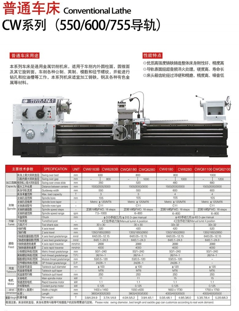 CWQ6280普通車床性能特點(diǎn):