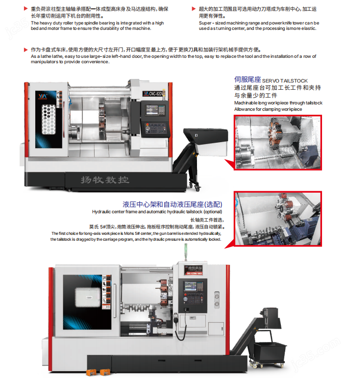 2.超大的加工范圍且可選用動(dòng)力刀塔成為車削中心,加工運(yùn)用更有彈性。